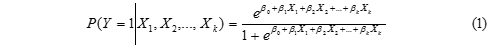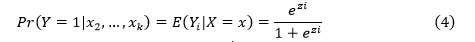 En este sentido, con la ecuación (1) puede ser replanteada en una función logística, la cual se desarrolla de la siguiente forma: