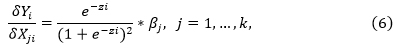 Por último, los efectos marginales del modelo se calculan partiendo de (3), obteniendo la derivada parcial de las variables, resultando de la siguiente forma: