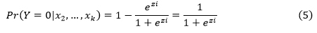 y, dados los valores de las variables independientes x2,…,xk, las probabilidades de que la variable dependiente tome los valores 1 y 0 son: